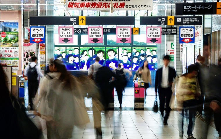 作品は、駅をご利用いただくお客様が改札を出る際、その目の前に出現します。