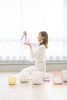 軽いストレッチをしてから仰向けやあぐらなどの姿勢になり、リラックスしてクリスタルボウルの音を聴いていきます。