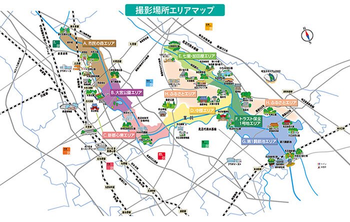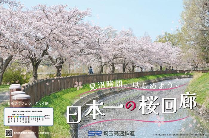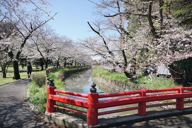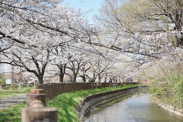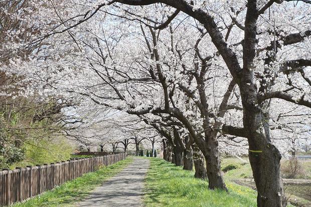 桜の下を散策できる日本一の桜回廊。見沼たんぼののどかな田園風景もみどころです。