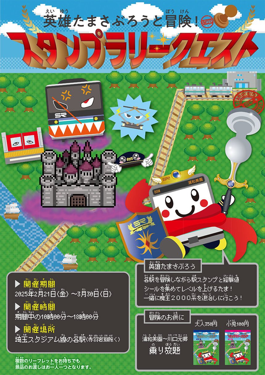 埼玉高速鉄道株式会社では、周遊型イベント「英雄たまさぶろうと冒険!スタンプラリークエスト」を開催いたします。本イベントは当社駅員が企画しご好評をいただいている第5弾の周遊型イベントです。