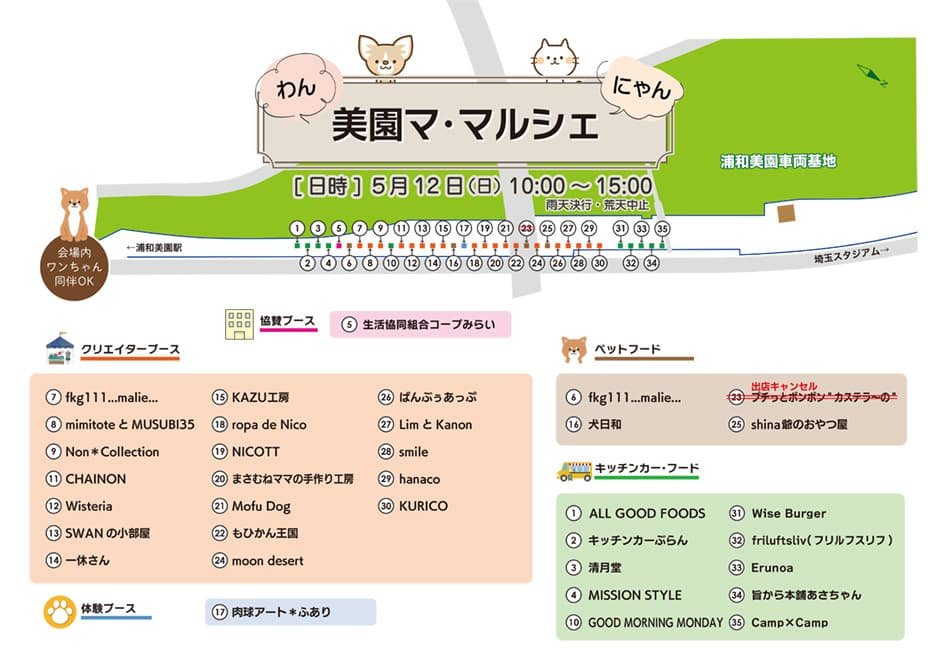 (PDF版はこちら ⇒ 5月12日 美園ママルシェ 会場マップ)