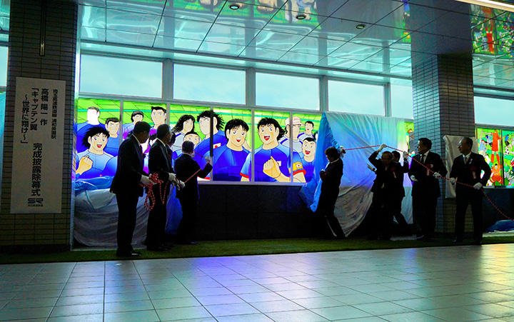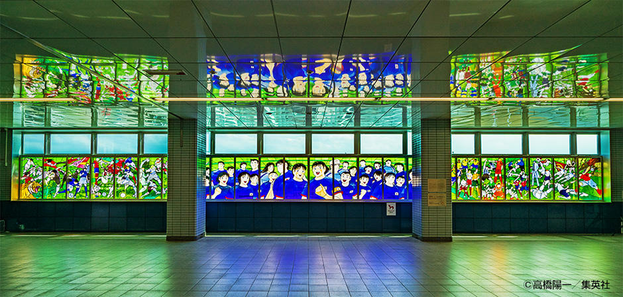 2018年3月11日、公益財団法人日本交通文化協会のご協力のもと、一般財団法人日本宝くじ協会のの助成を受け、埼玉高速鉄道線の浦和美園駅に設置されたパブリックアートの除幕式が行われました。 このパブリックアートは、世界的に有名な漫画『キャプテン翼』をベースに制作された巨大なステンドグラスです。