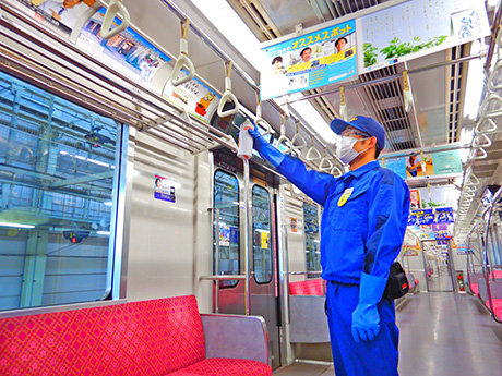 当社では、これまでも新型コロナウイルス感染拡大防止の観点から、全車両において消毒液を使用した車内消毒作業を定期的に実施してきましたが、お客さまにより安心して当社の車両をご利用いただくため、抗ウイルス・抗菌加工を全車両において実施します。併せまして、抗ウイルス・抗菌加工を施した車両には、車両内に施行済のステッカーを掲出します。