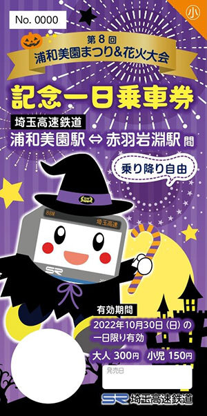 埼玉高速鉄道株式会社(さいたま市緑区 代表取締役社⻑:荻野 洋)では、本年10月30日(日)に開催する、 「第8回 浦和美園まつり&花火大会」にあわせて、お得な乗車券「第8回 浦和美園まつり&花火大会記念一日乗車券」を発売いたします。