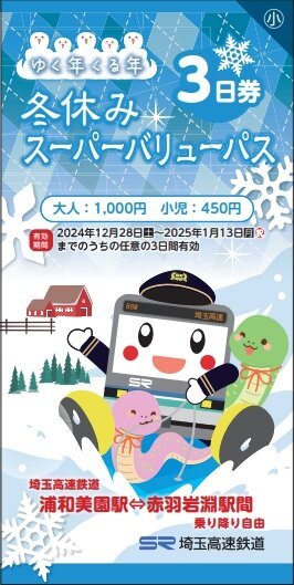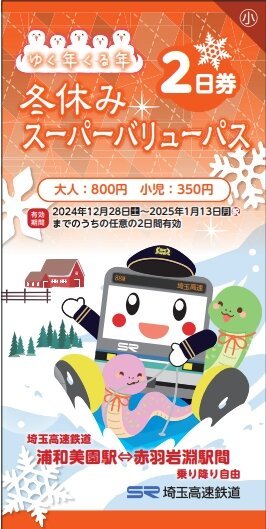 埼⽟⾼速鉄道株式会社(さいたま市緑区 代表取締役社⻑:平野 邦彦)では、最大9連休の年末年始にご利用いただける、便利でお得な乗車券「ゆく年くる年冬休みスーパーバリューパス」を数量限定で発売いたします。