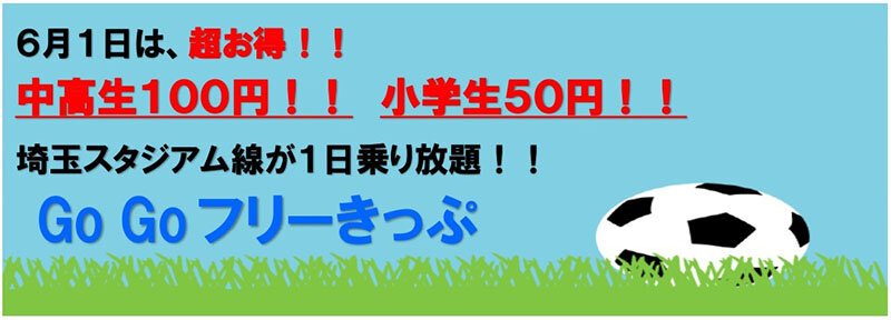 6月1日は、超お得!! 中高生100円!! 小学生50円!! 埼玉スタジアム線が1日乗り放題!! Go Goフリーきっぷ