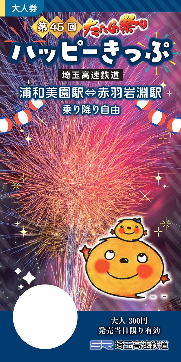 埼玉高速鉄道株式会社(埼玉県さいたま市 代表取締役社長 平野 邦彦)では、2025年 8月23日(土)~8月24日(日)に川口オートレース場にて開催される「第45回たたら祭り」のご来場に大変お得な乗車券 「第45回たたら祭りハッピーきっぷ」を発売いたします。