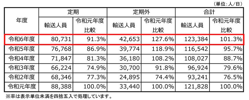 輸送人員:12.3万人/日、前年比+5.9% 過去最高