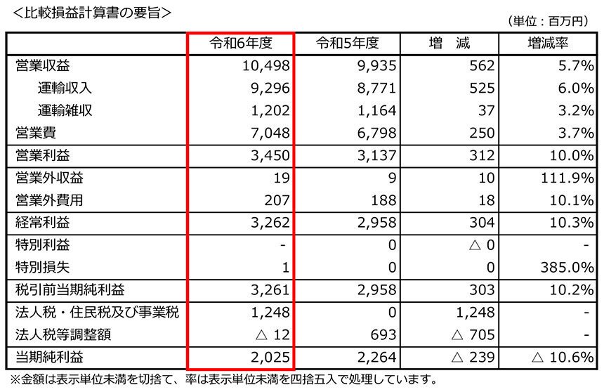 運輸収入:92.9億円、前年比+6.0% 過去最高