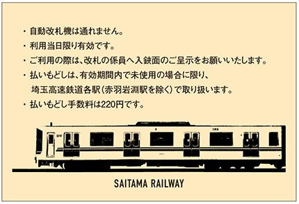 注)東京メトロ線、赤羽岩淵駅からご乗車の場合、降車駅改札窓口にて本乗車券と変更いたします。