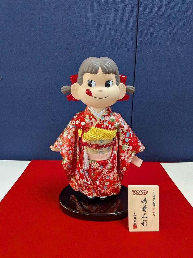 店舗内には、延伸への期待が高まる「人形のまち岩槻」との特別コラボレーションとして、老舗人形店「東玉」が手掛けた特別製作の「ペコちゃん人形」を展示いたします。