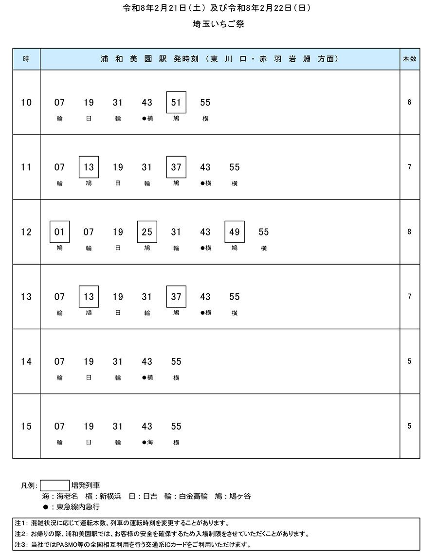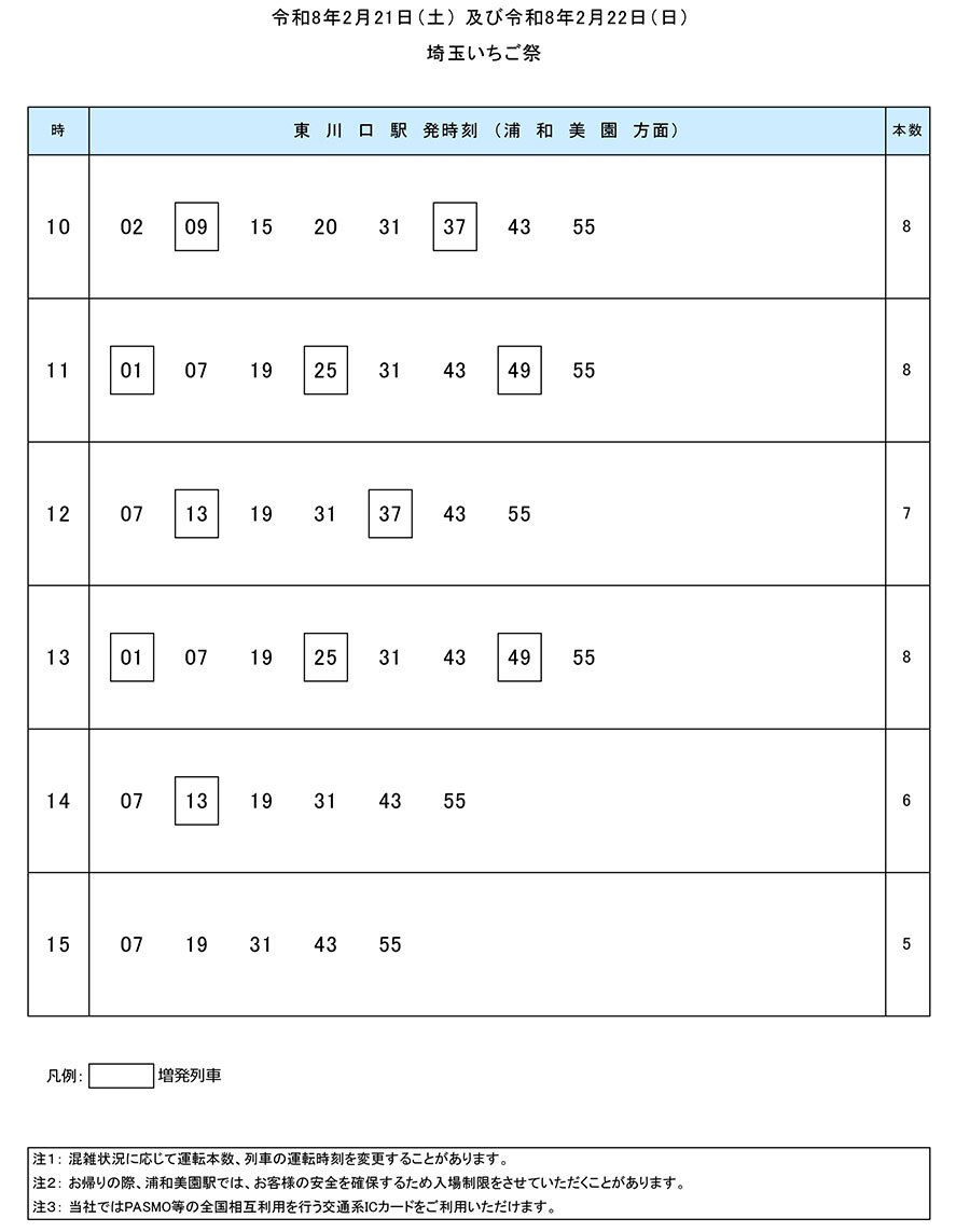 令和8年2月21日(土)、2月22日(日)埼玉いちご祭 臨時ダイヤのご案内(更新)