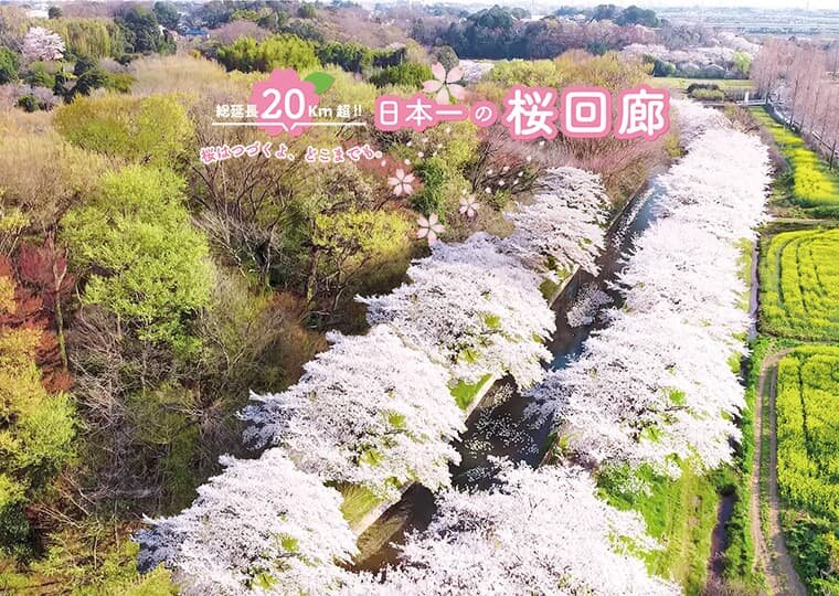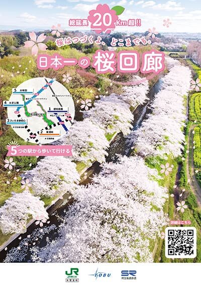 見沼田んぼに広がる20キロを超える"日本一の桜回廊"を広域的に発信する取り組みと、当社駅を起点に楽しめる身近な桜の魅力発信を同時展開し、沿線内外からの春の来訪促進および地域のにぎわい創出を図ります。
